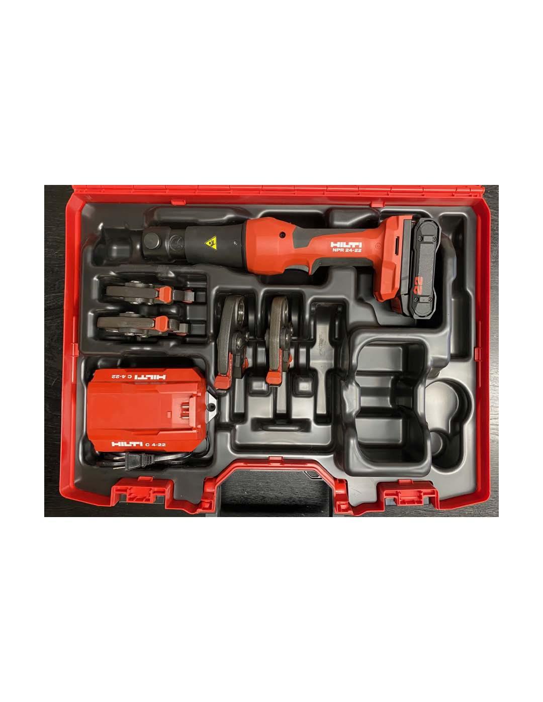 - Rental includes: 1/2", 3/4", 1" & 1-1/4" jaws. Battery, Charger, and Carrying case